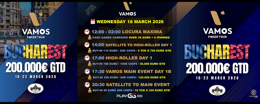 ♠️ Vamos Poker Tour Bucuresti 2026 Full Schedule 🔥 📆 13- 22 Martie 2026 🔥 💰 Premii GARANTATE de Peste 200.000 Euro 🔥