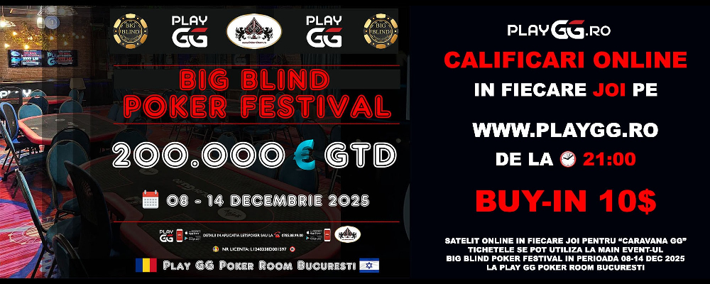 ♠️ Big Blind & Runner Runner Poker Festival 🇮🇱 📆 08 - 14 Decembrie 2025 🔥💰 200.000 Euro GARANTATI 🔥 🇹🇩 Play GG Poker Room Bucuresti Romania 🔥